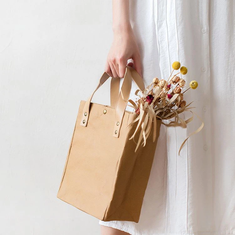 Material: Washable kraft paper Style: Handled, Tote bag Place of Origin: Fujian, China Brand Name: Green Field Model Number: KPTB-16 Color: Can be customized | Use: Sundries, Toiletry Feature: Recyclable, reusable, portable Sample: Available, can offer immediately Size: Can be custom Logo: Accept Customized Logo Product name: fashion bags ladies handbags |